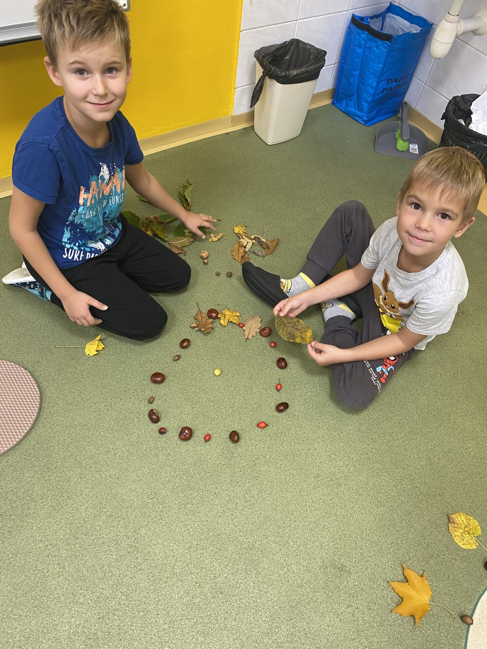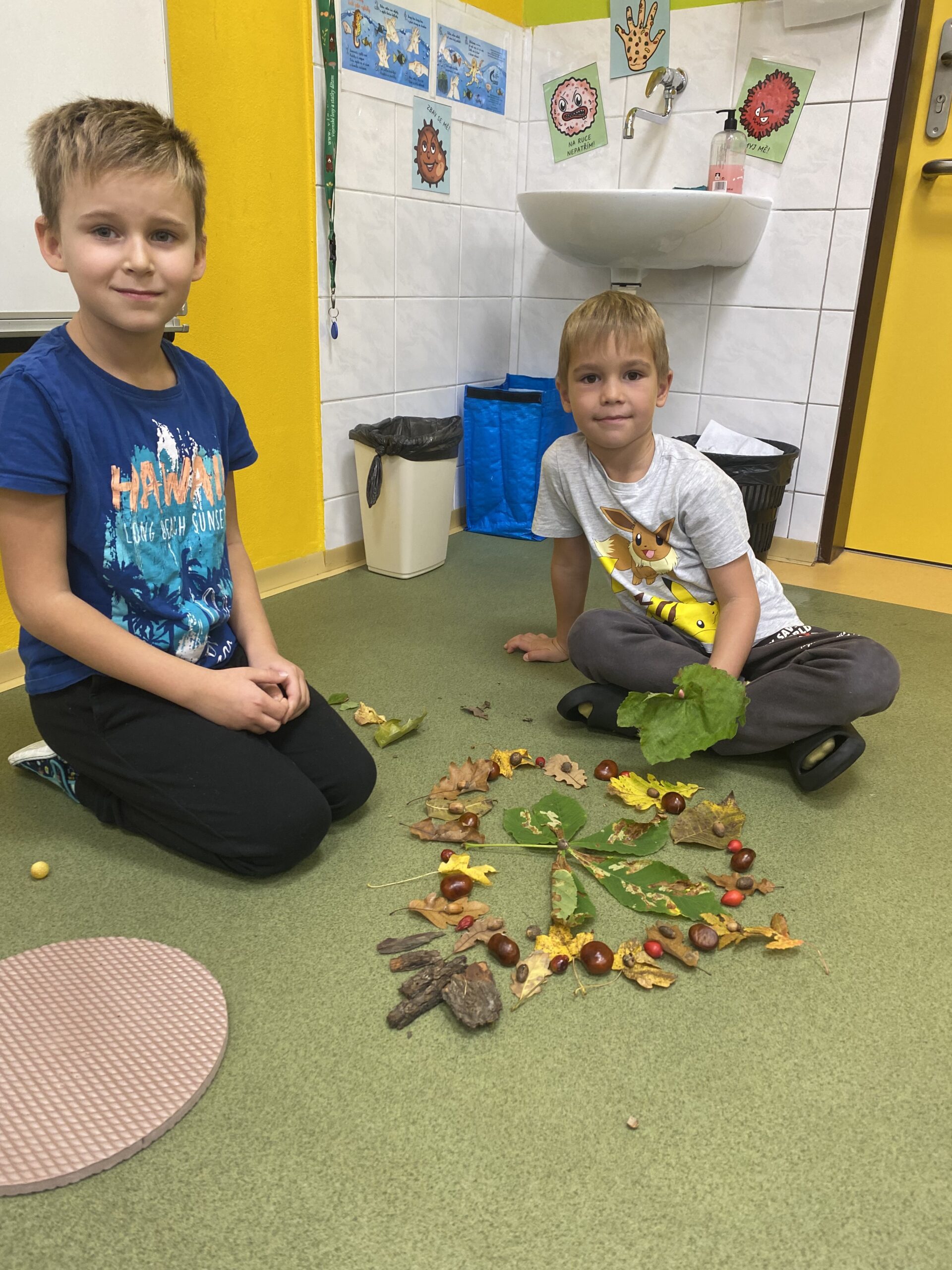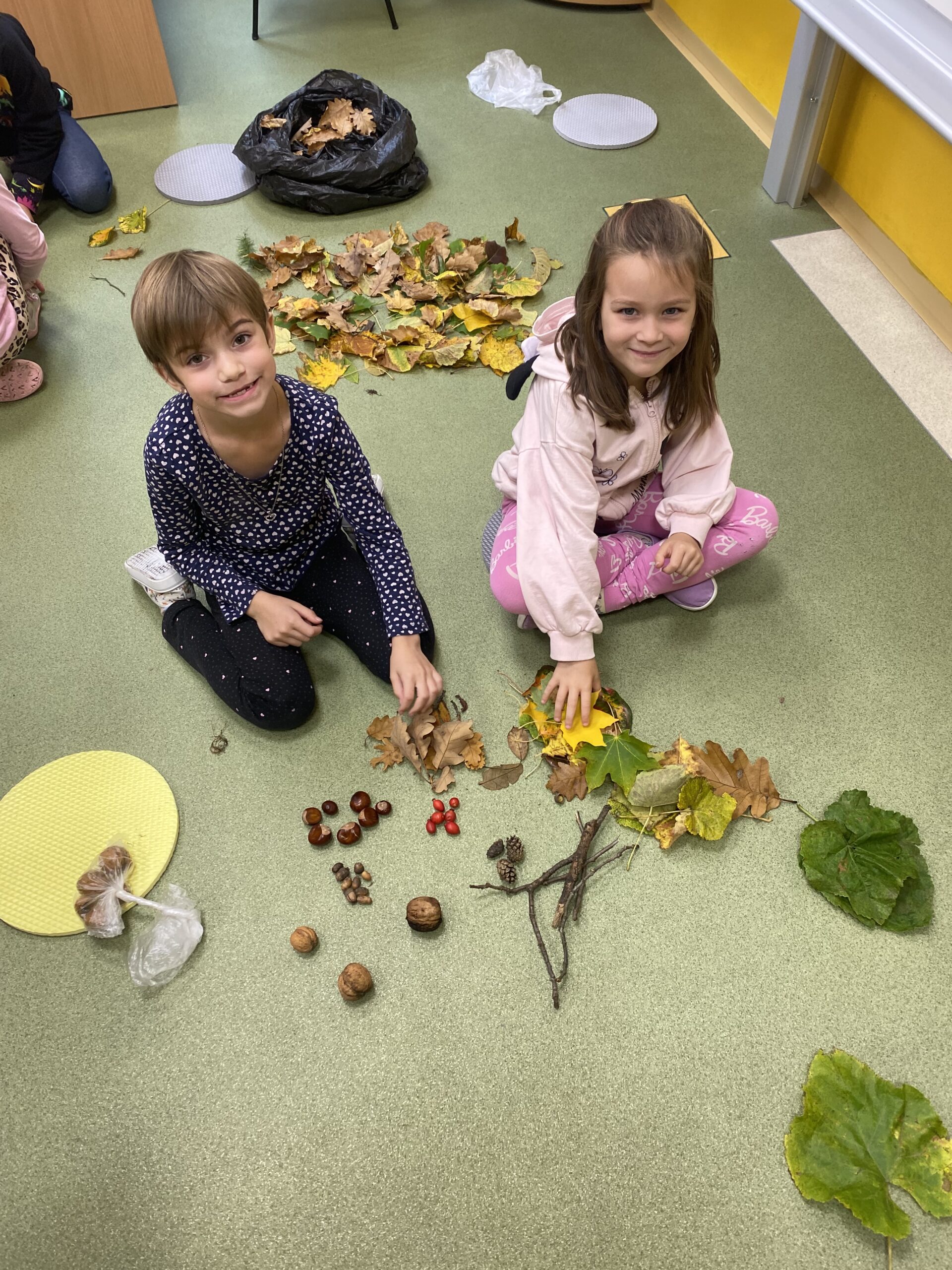 Učíme se poznávat přírodniny, které si děti samy nasbíraly.