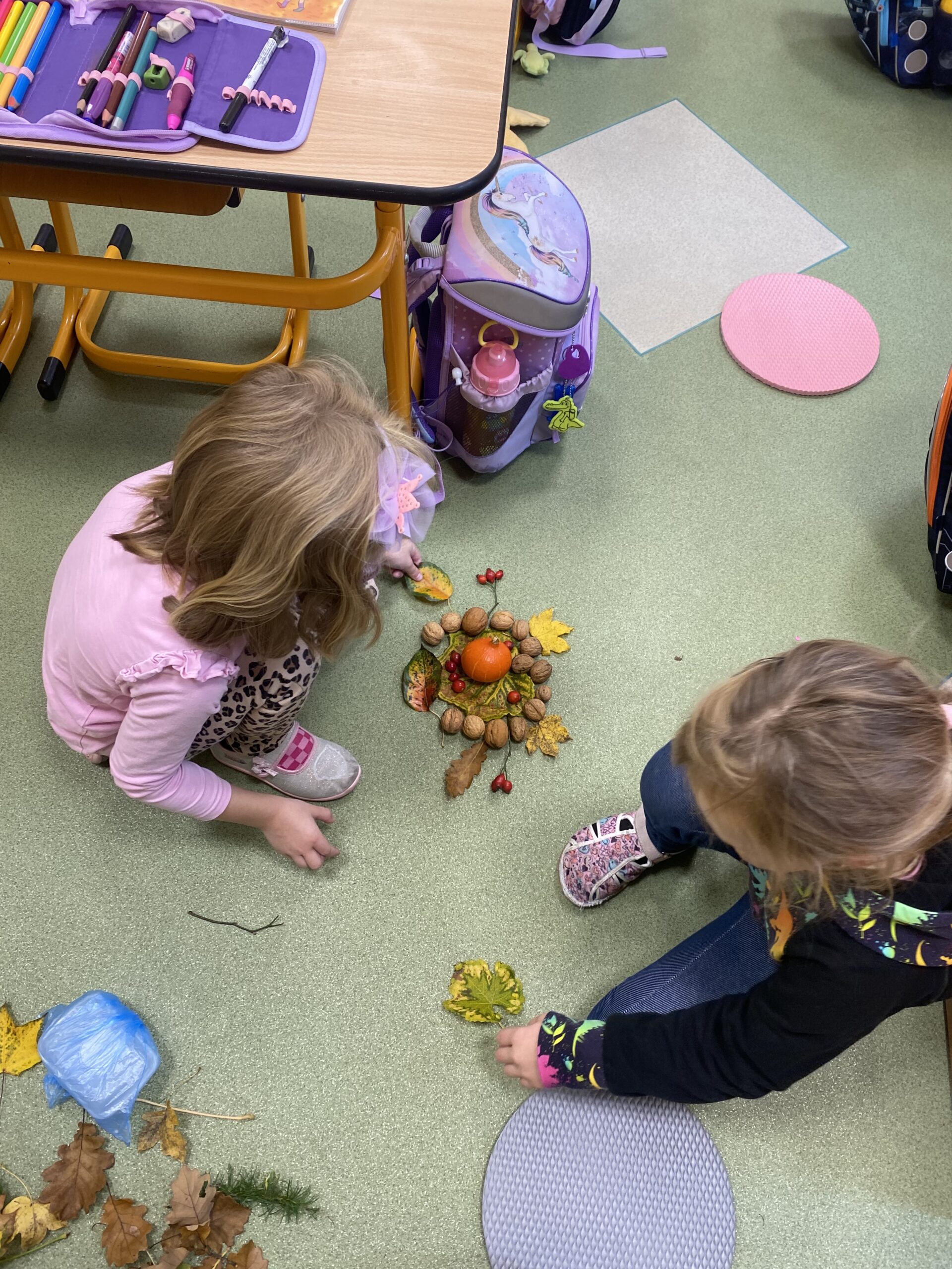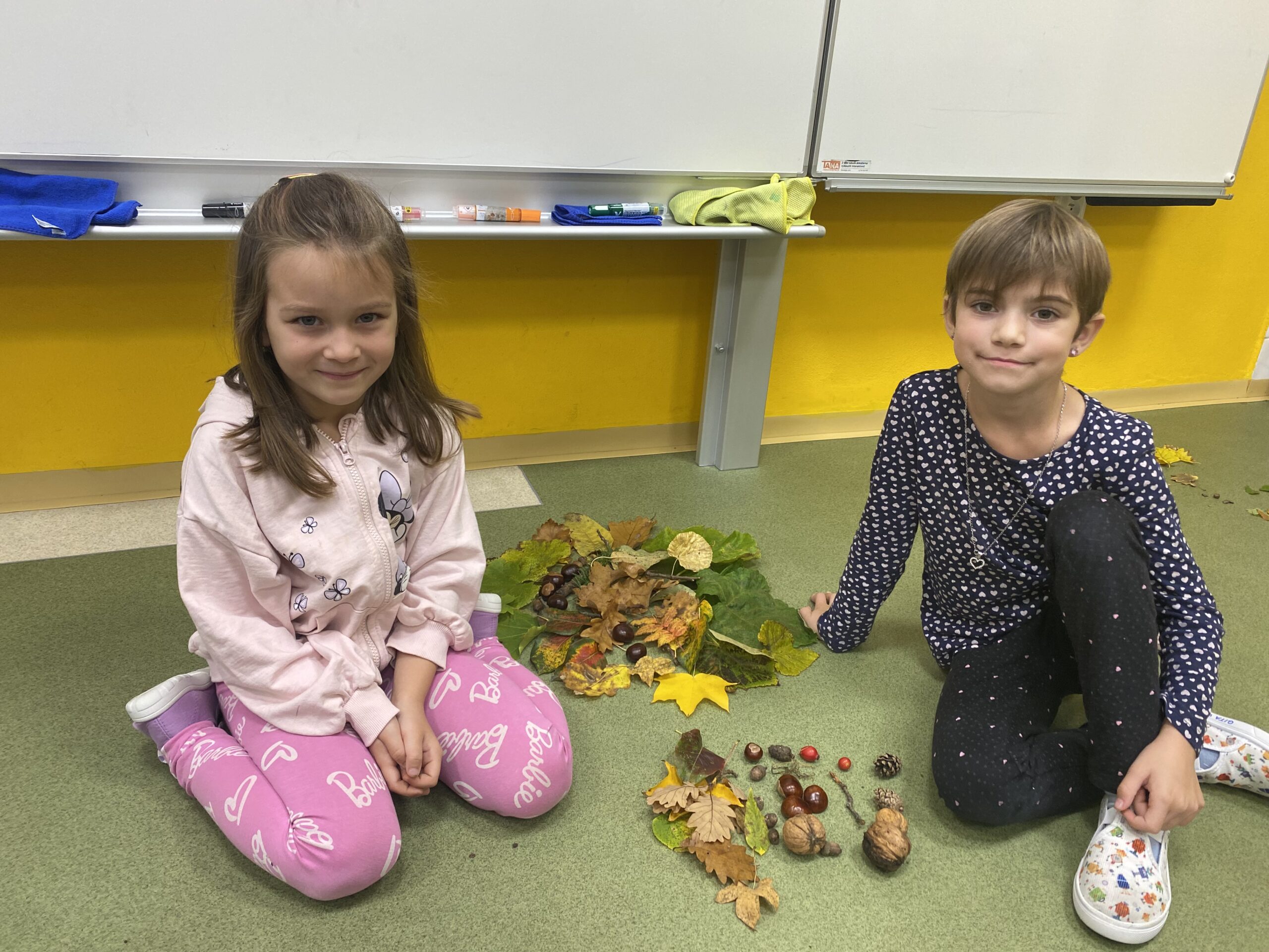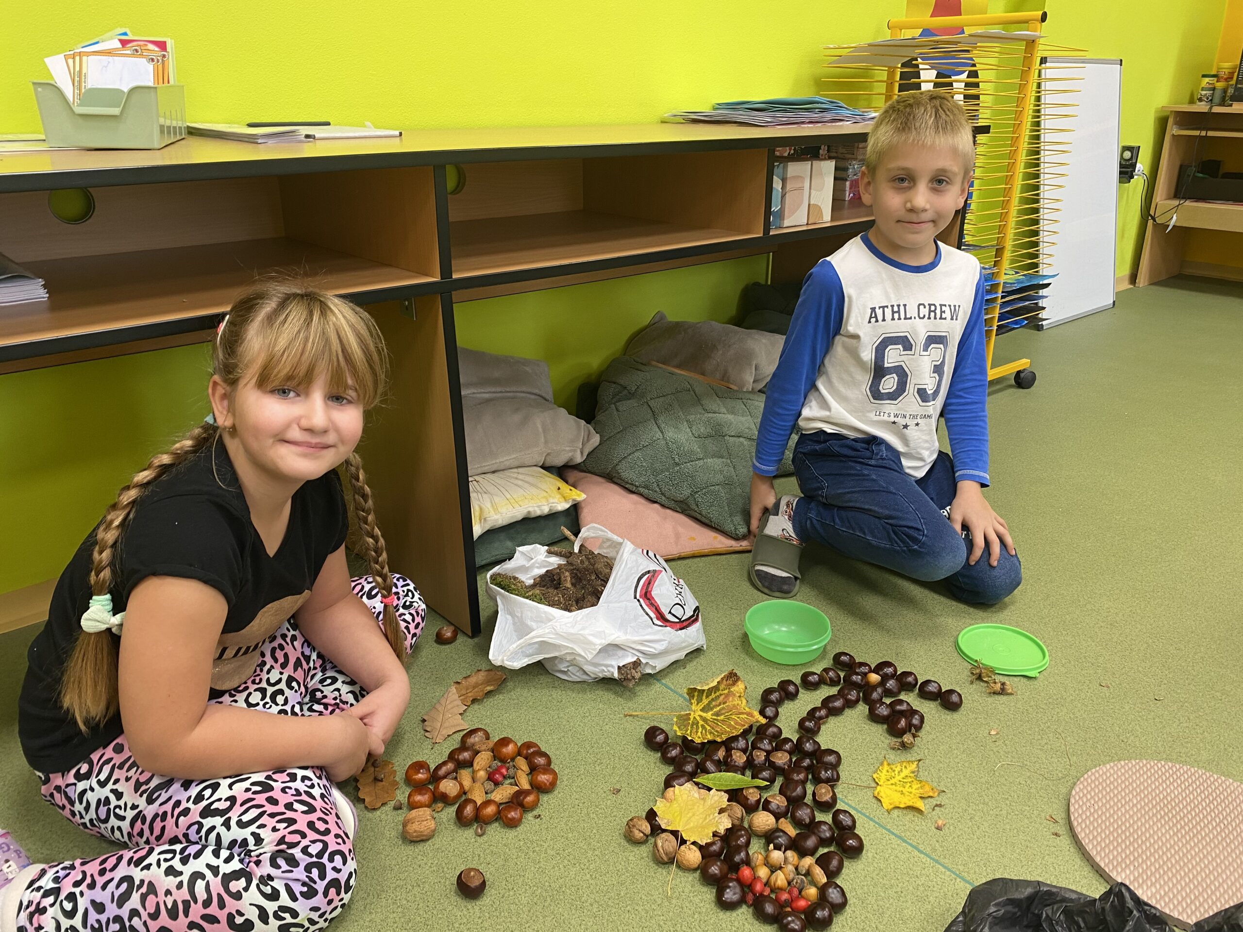 Učíme se poznávat přírodniny, které si děti samy nasbíraly.